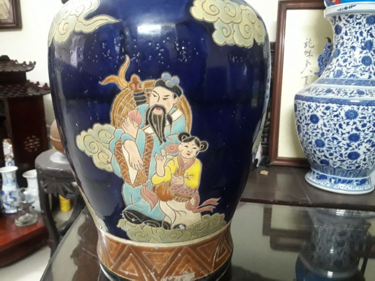 Giao lưu một lọ gốm Biên Hòa già tuổi vẽ tích bát tiên rất đẹp , lành nguyên vẹn , chiều cao 52.5cm, đường kính miệng 24cm, đường kính vòng bụng 89cm.đăng lên cho bác nào cần .Kính phố các bác giao lưu xin gọi trực tiếp.