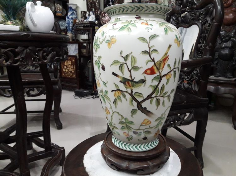 Giao lưu môt lọ sứ màu vẽ chim hoa rất đẹp, cao 31cm, đường kính miệng 14,5cm,vòng bụng 61cm, lành nguyên vẹn , trưng bày đẹp tuyệt.đăng lên cho bác nào cần.Kính phố.Các bác giao lưu xin gọi trực tiếp.