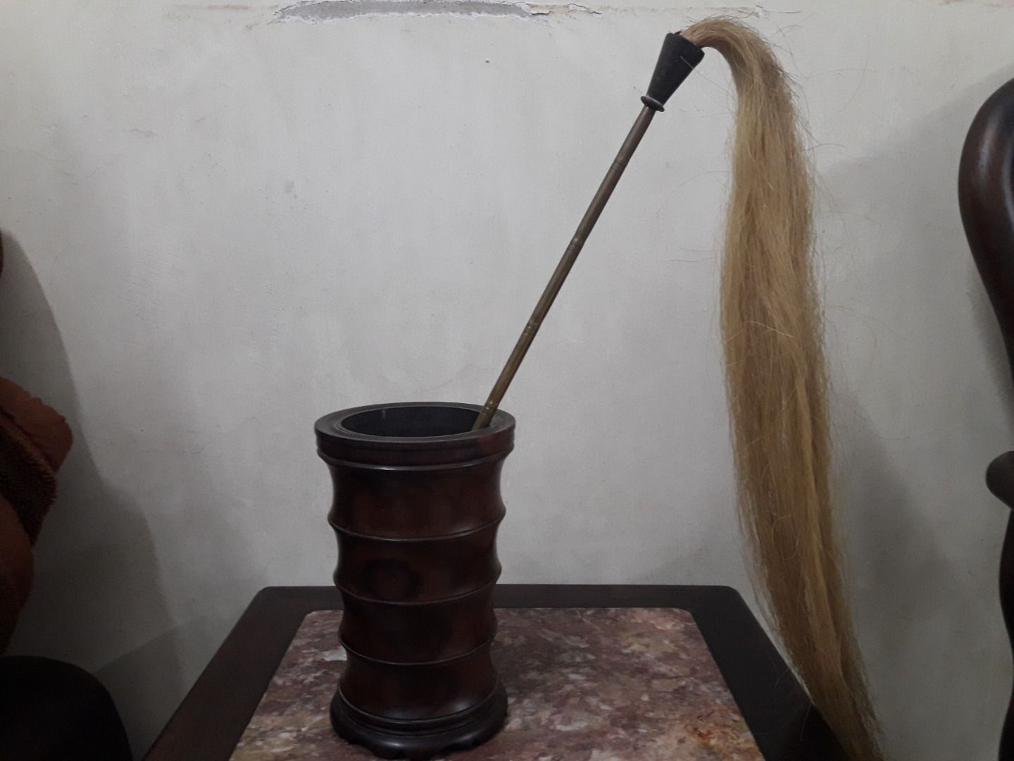 giao lưu một phất trần đuôi ngựa bạch xịn dài 90cm tính cả cán cầm , phần lông đuôi dài 54cm, trưng bày phong thủy hay decor đều tuyệt vời .Giá giao lưu 850k.Kính phố