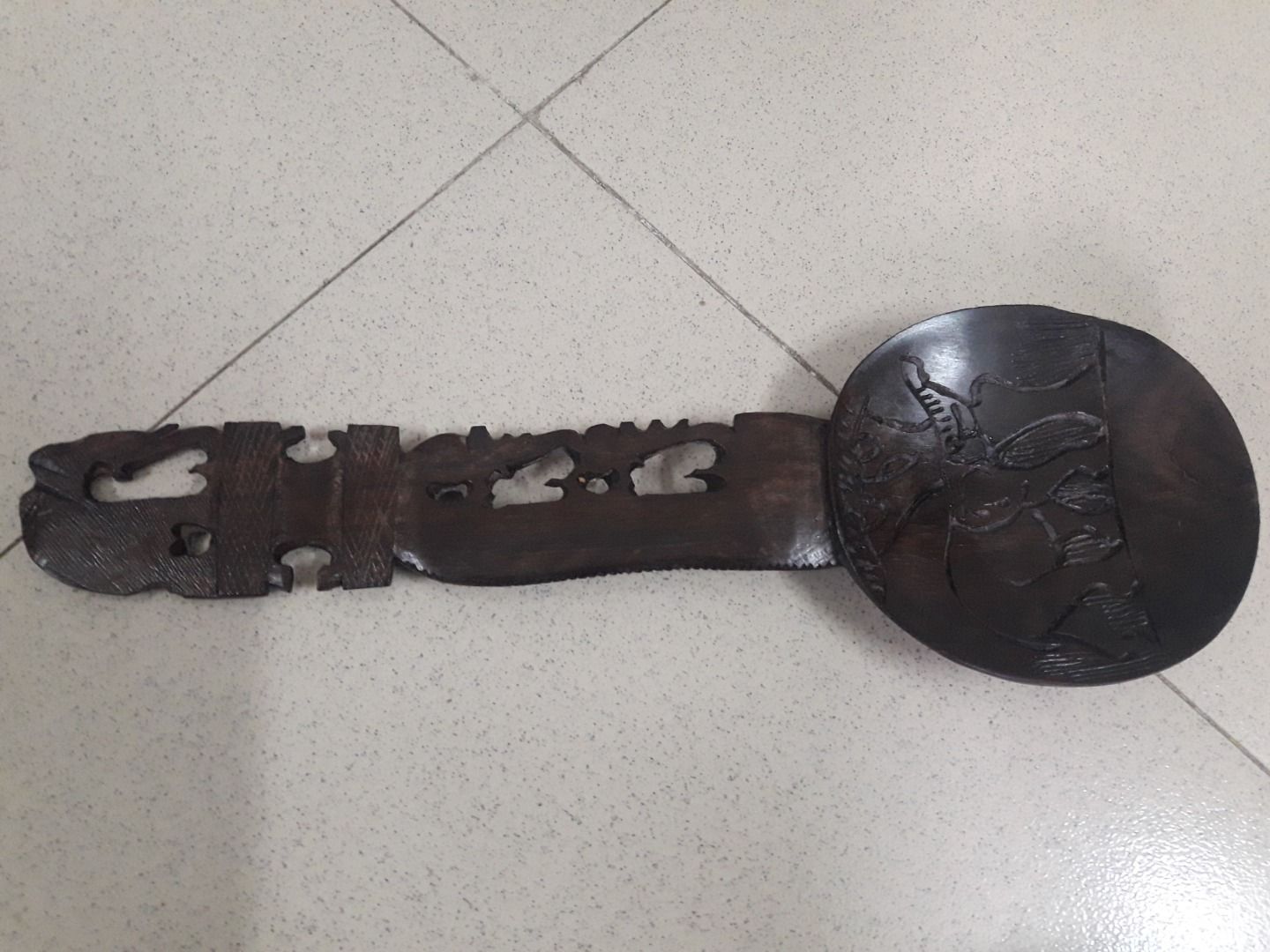 Giao lưu một thìa gỗ trắ...c dài 31cm, chiều ngang chỗ thìa 10cm, chạm khắc rất đẹp ,liền nguyên khối, giá 650k.Kính phố.