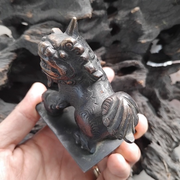 Tượng Nghê phong thủy bằng đồng cổ, mang ý nghĩa tài lộc, may mắn.