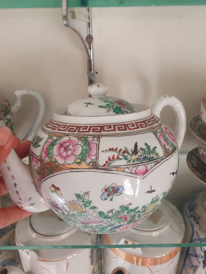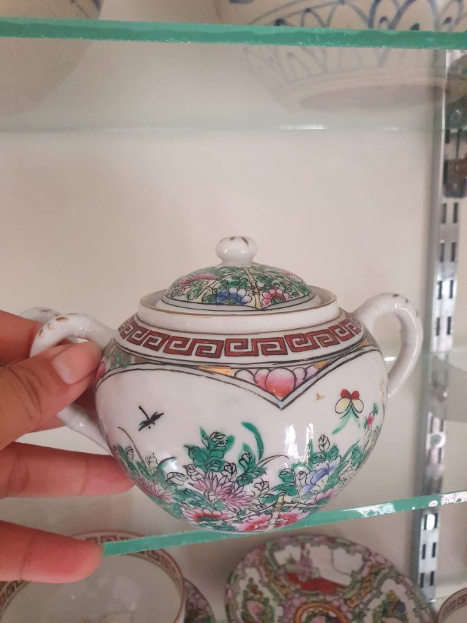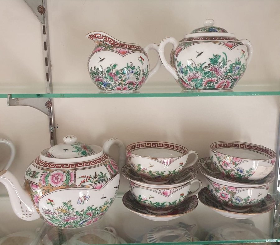 Giao lưu nhanh 1 bộ trà đạo gốm tàu ngũ sắc,hàng xuất dương xưa.5000k