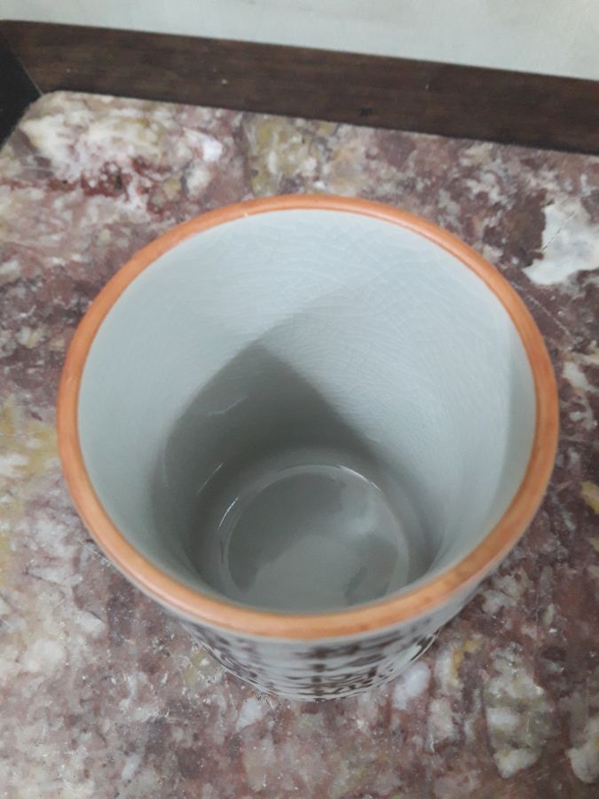 Giao lưu ống đựng bút cao 10cm, đường kính miệng 7,5cm, tình trạng lành nguyên vẹn, giá 350k.Đăng lên cho bác nào cần.Kính phố.