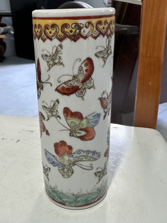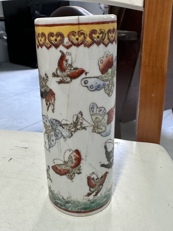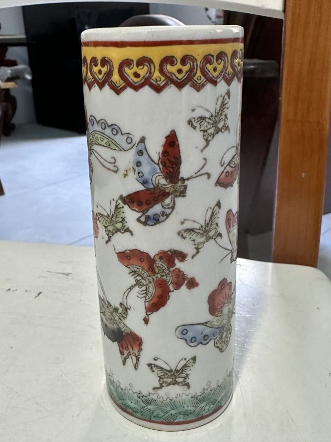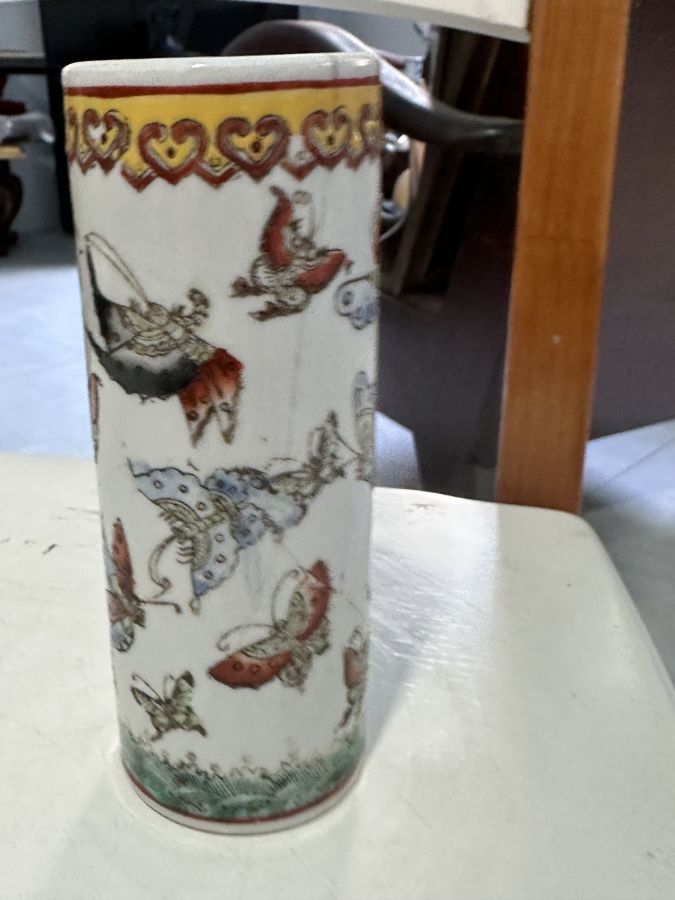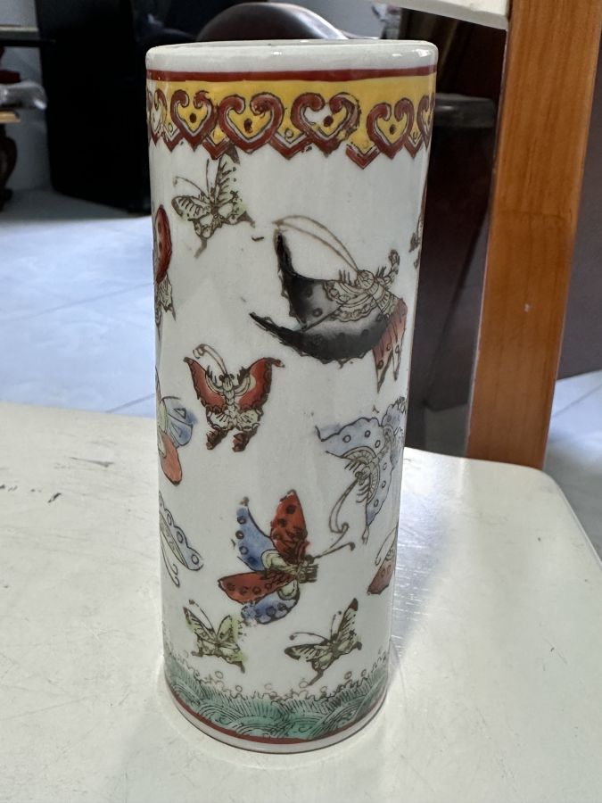 Ống tăm vẽ tay bách điệp rất đẹp và chuẩn cổ vật..Cao 14,5cm, miệng 5cm.. âm nhẹ như hình ảnh chụp.. bán 350 ngàn đồng bao gởi