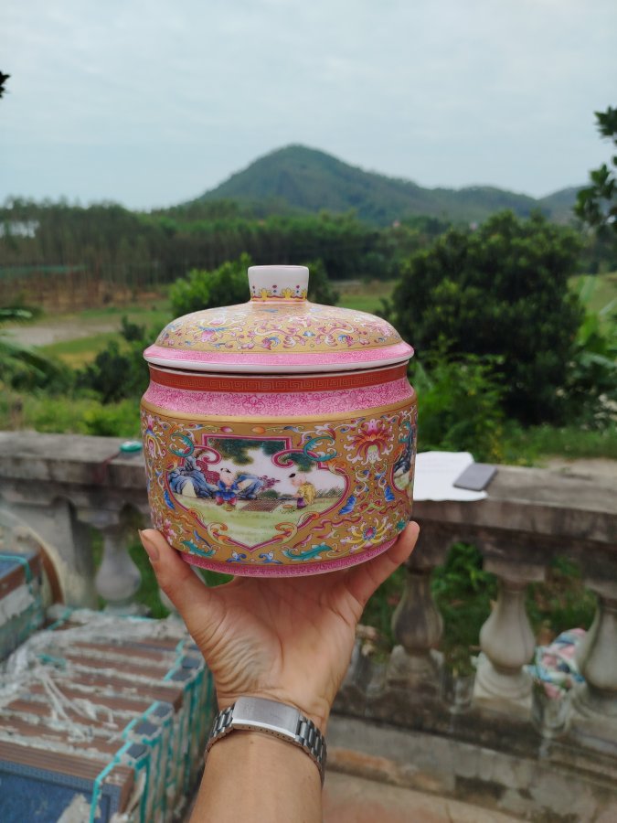 Giao lưu thố sứ trung hoa vẽ bách nhi bổ ô men ngũ thái đt 0983491274