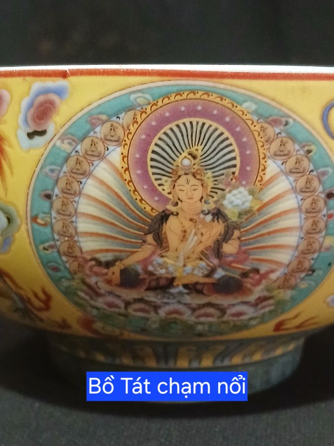 GL chiếc tô ngũ thái chạm nổi Bồ Tát và Rồng.