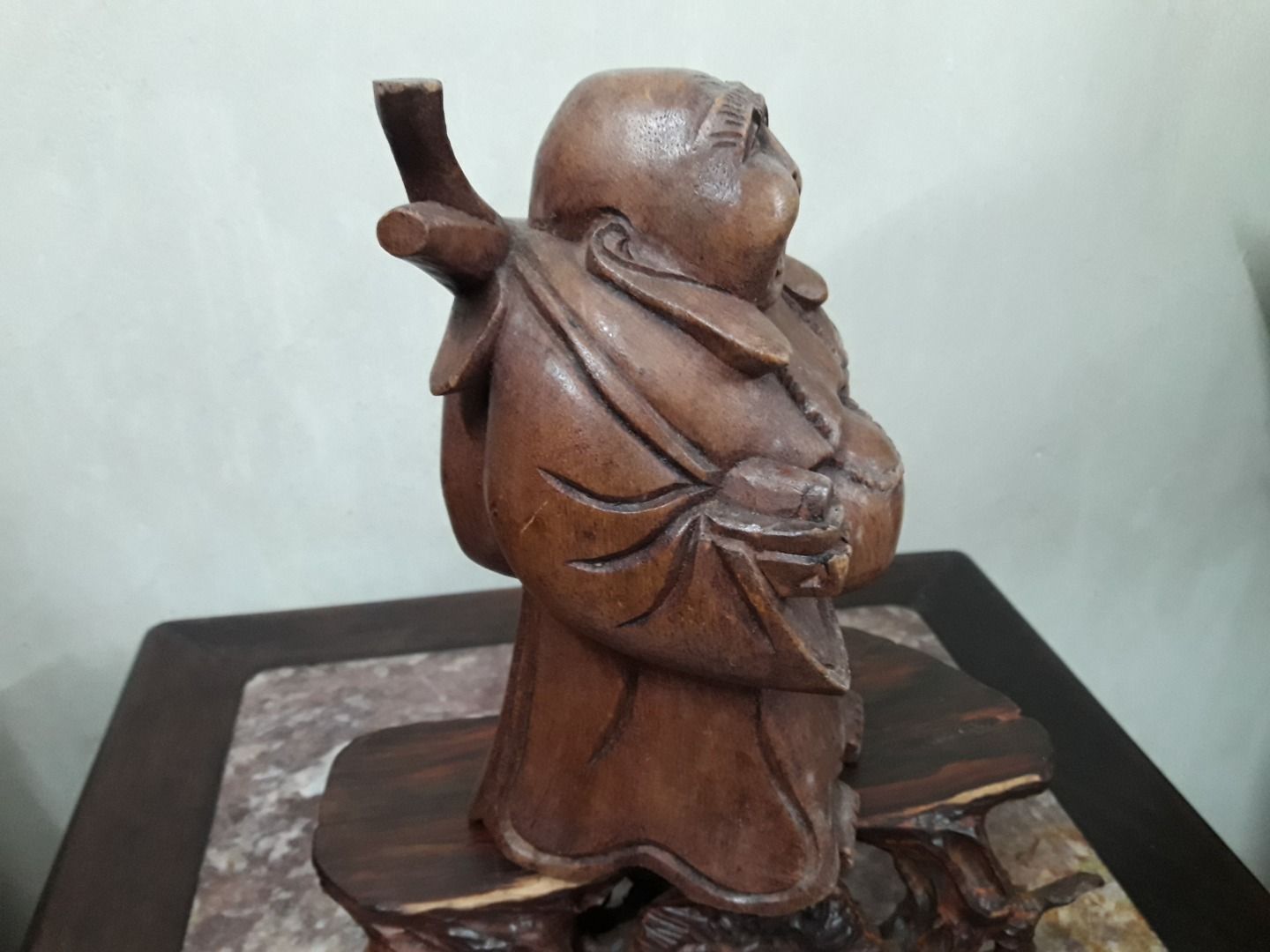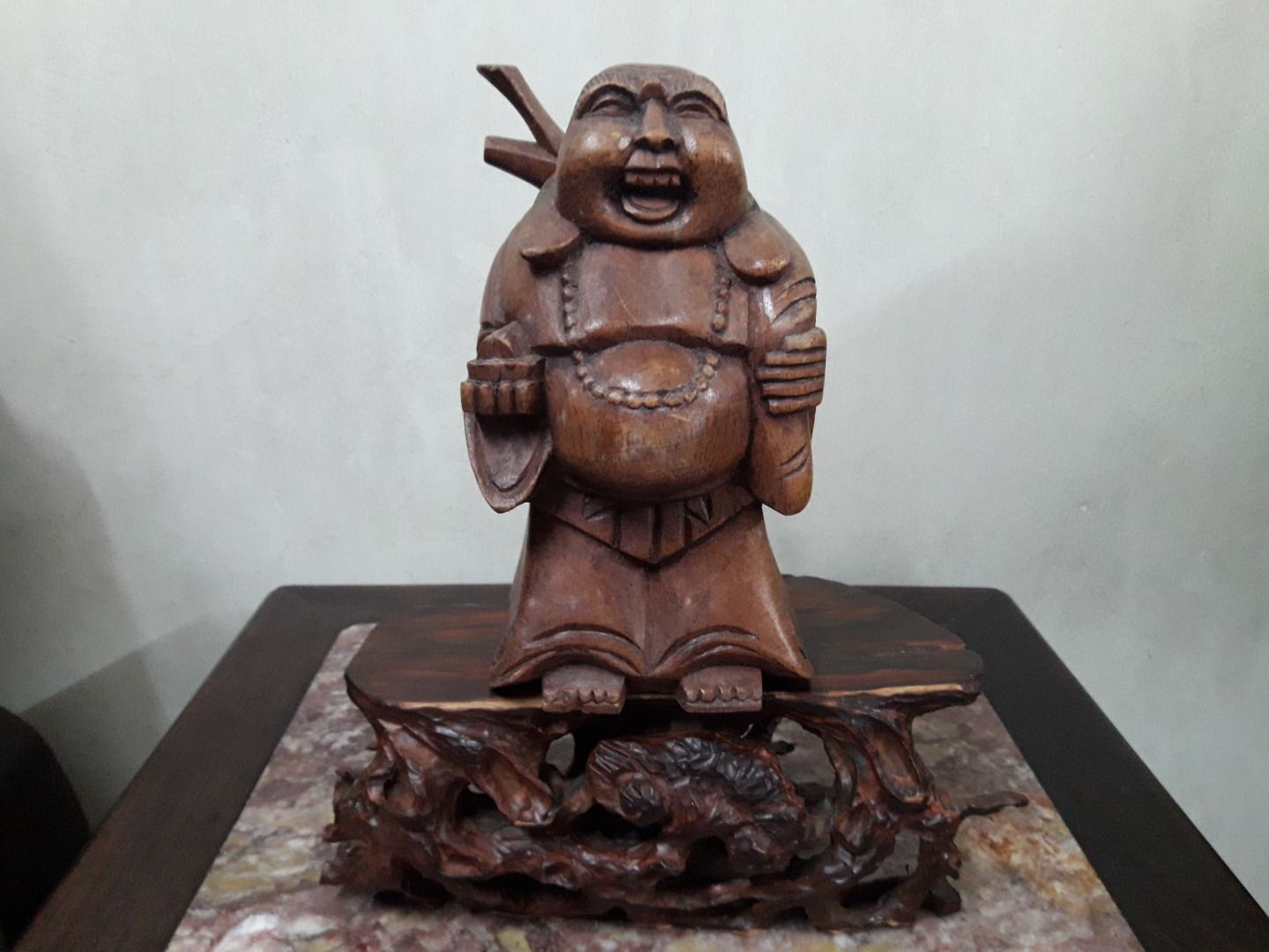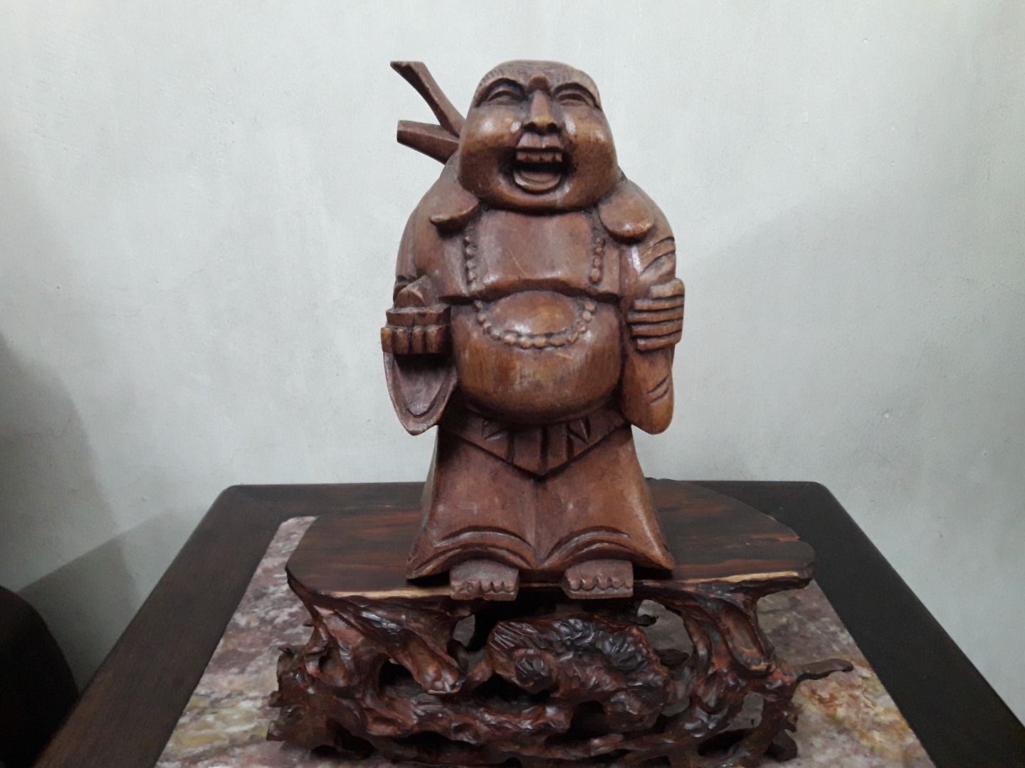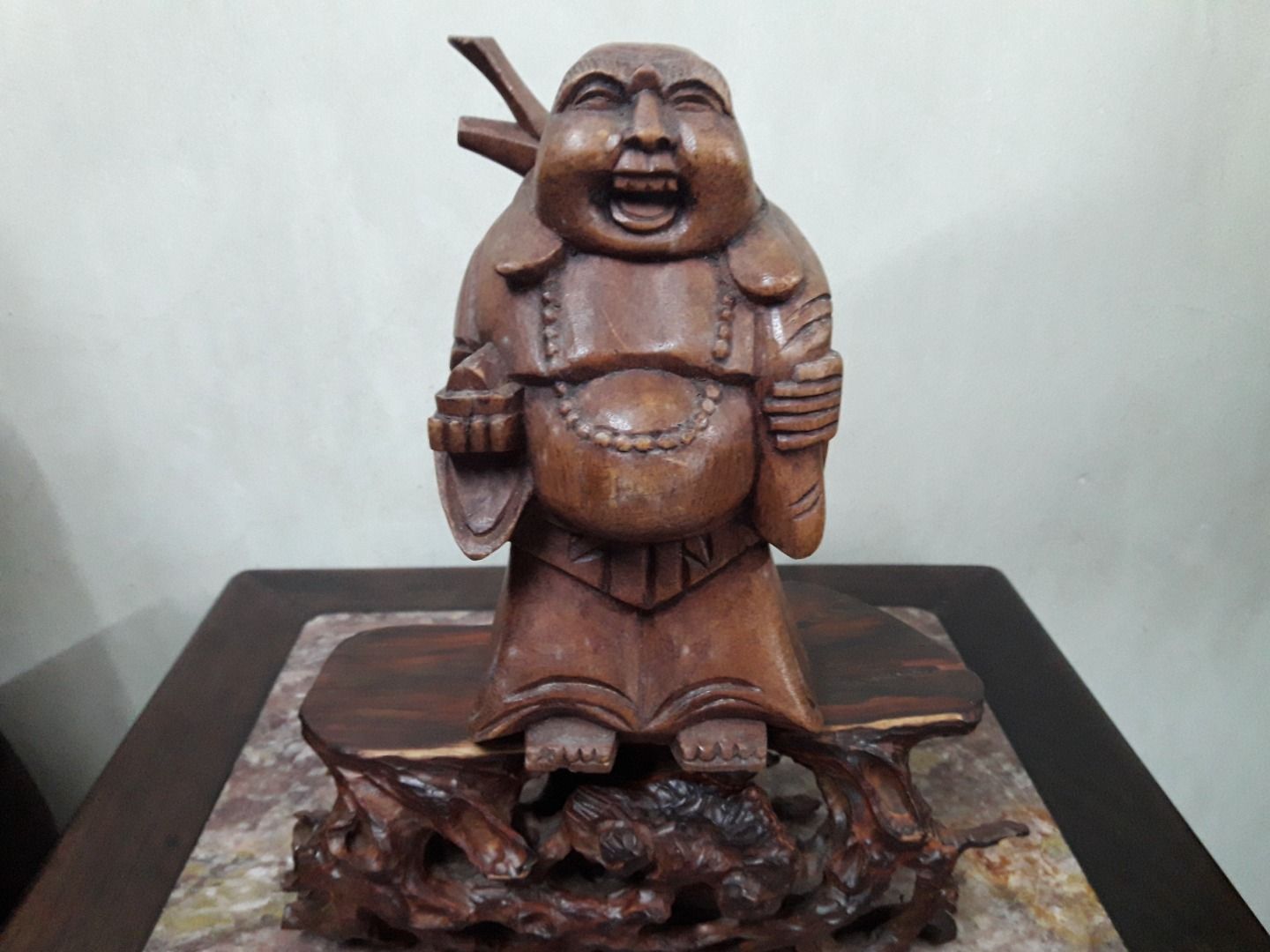 Giao lưu cụ di lặc độc lạ,dị cao 19cm, ngang chỗ rộng nhất 11cm, sâu vào 10cm , lành nguyên vẹn, hàng xưa cũ rồi, chất gỗ không biết là gỗ gì nhưng ten gỗ rất đẹp...Kính phố.