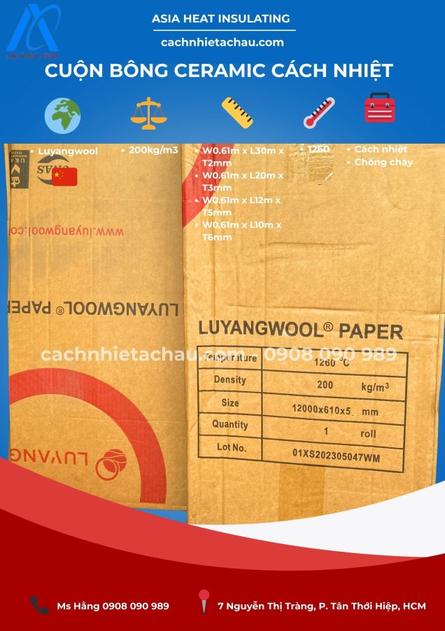 THÔNG SỐ GIẤY BÌA SỢI GỐM CERAMIC CHỊU NHIỆT: