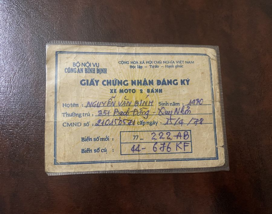 1 giấy đăng ký xe 2 bánh ( Honda ) mẫu đã hết sử dụng chỉ có giá trị sưu tầm
