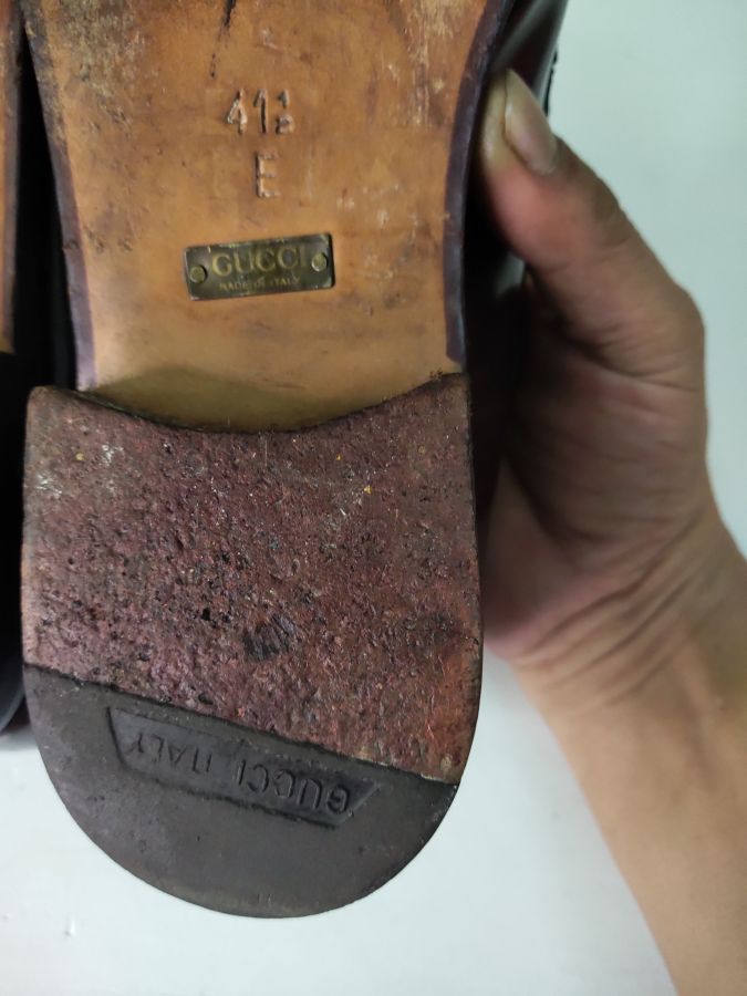 Giầy gucci italy bao chuẩn authentic chính hãng , bao hàng sai hoàn đền 20tr ,qua sd lướt 95% kg lỗi ,thanh lý rẻ , mua mới cả 100tr , size 41.1/2: tag code 110-1362 .41.1/2 E