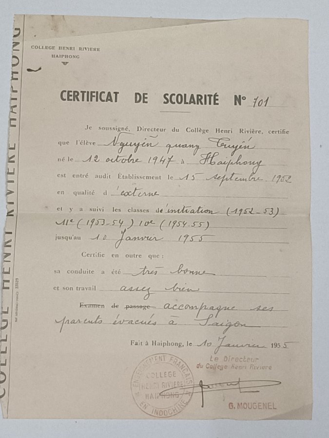 Giấy nhận xét đông dương ( giới thiệu) cho người di cư vào Sài Gòn !