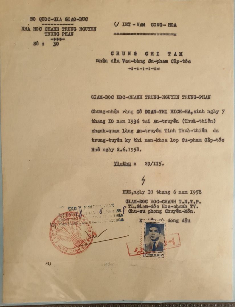 5/ Chứng chỉ tạm văn bằng Sư phạm 1958 - Giá 500.000đ
