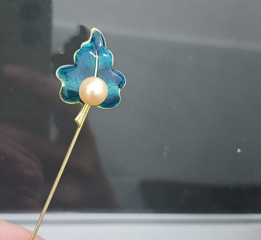 Gim cài áo đính ngọc trai Akoya ánh vàng 7 li.