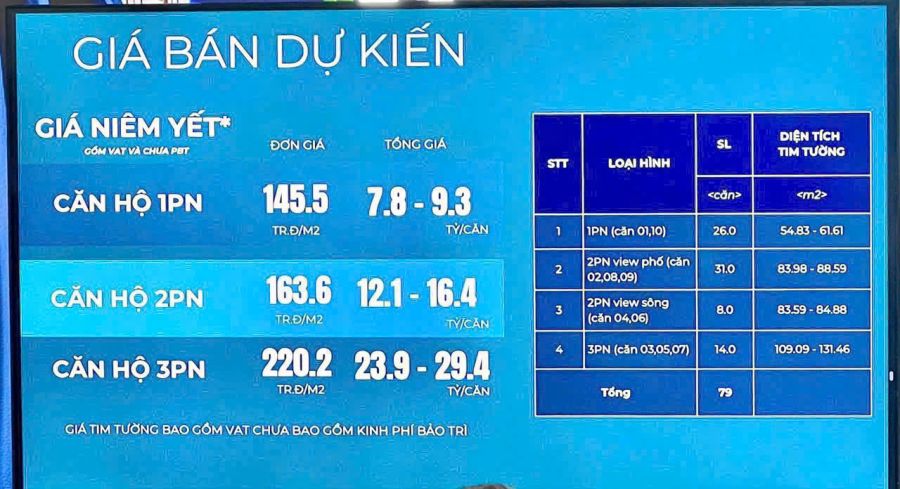 - Căn 1PN: 7,8 - 9,3 tỷ (Cho thuê từ 28 triệu/tháng)