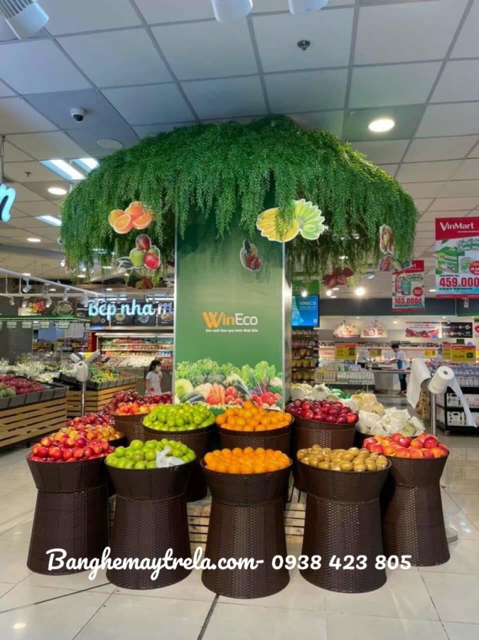 Nhựa giả mây cao cấp, chống thấm nước, không phai màu, phù hợp với môi trường siêu thị.