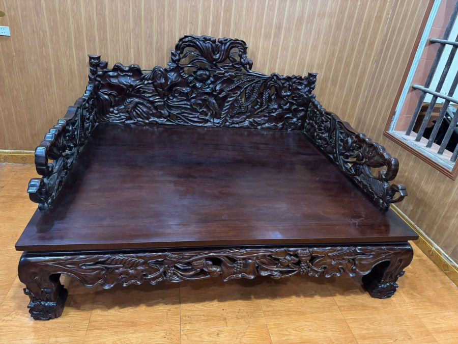 Giường 3 thành sen vip ( siêu phẩm đục tay ) 1 chiếc giường 3 thành đục tay e hoàn thiện siêu kỹ Hàng ván dày 2p Kt đại : 2m20 x 1m80