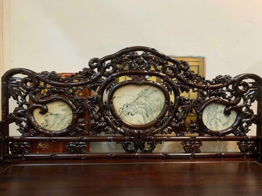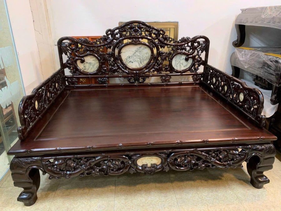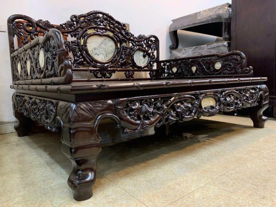 Giường ba thành trúc nho gỗ gụ kt 2m -1m60