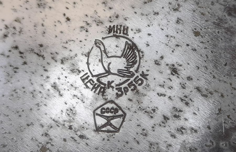 Bình mini Liên Xô xưa,  bằng đồng,  lớp mạ Niken sáng bóng,  bị sước nhẹ theo thời gian.