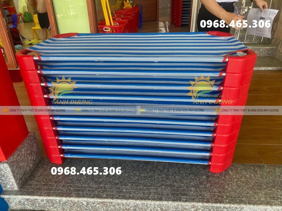 Mặt giường bằng vải lưới làm từ sợi cotton bọc nhựa chống thấm nước, thoáng mát mang lại giấc ngủ ngon cho bé, co giản vừa phải, giúp cột sống thẳng và đảm bảo phát triển sinh học.