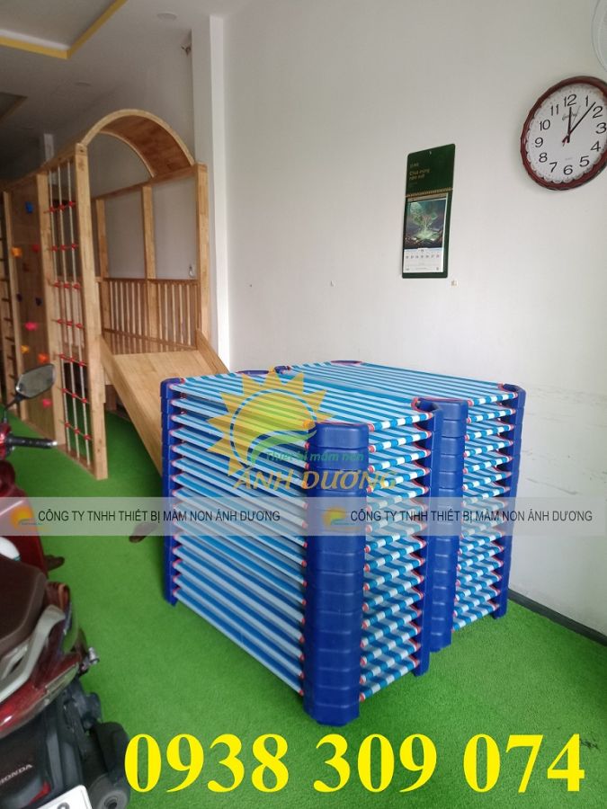 Giường lưới chân vuông cho bé mầm non là một sản phẩm không thể thiếu của các trường mầm