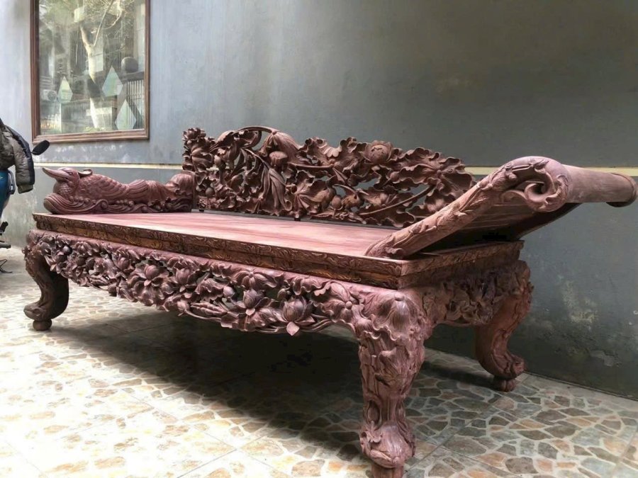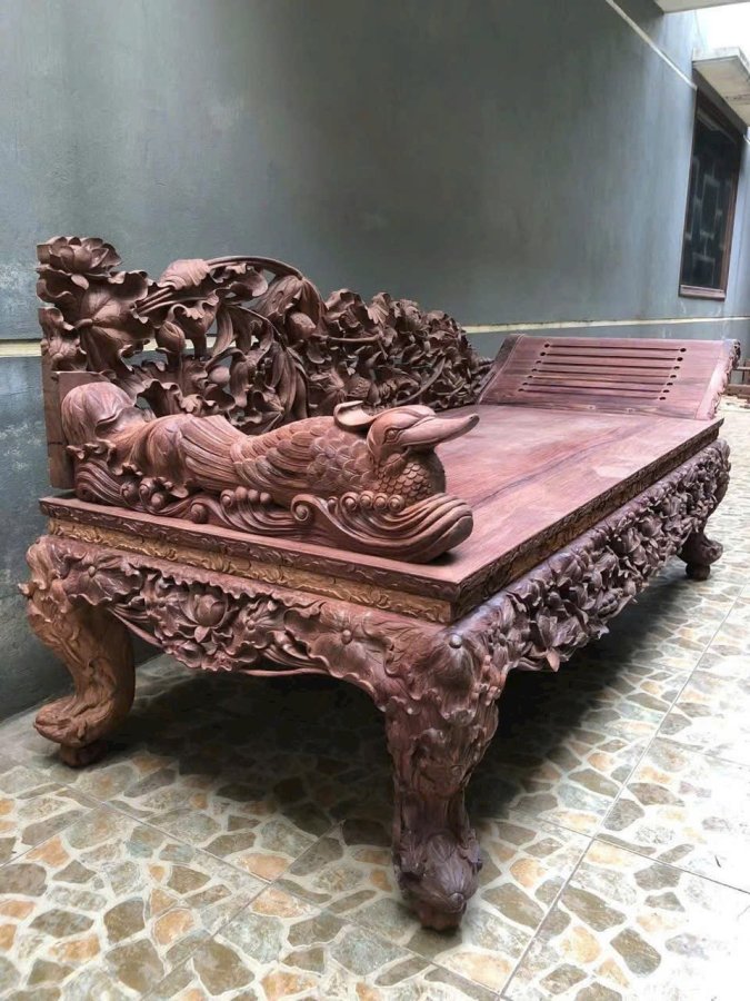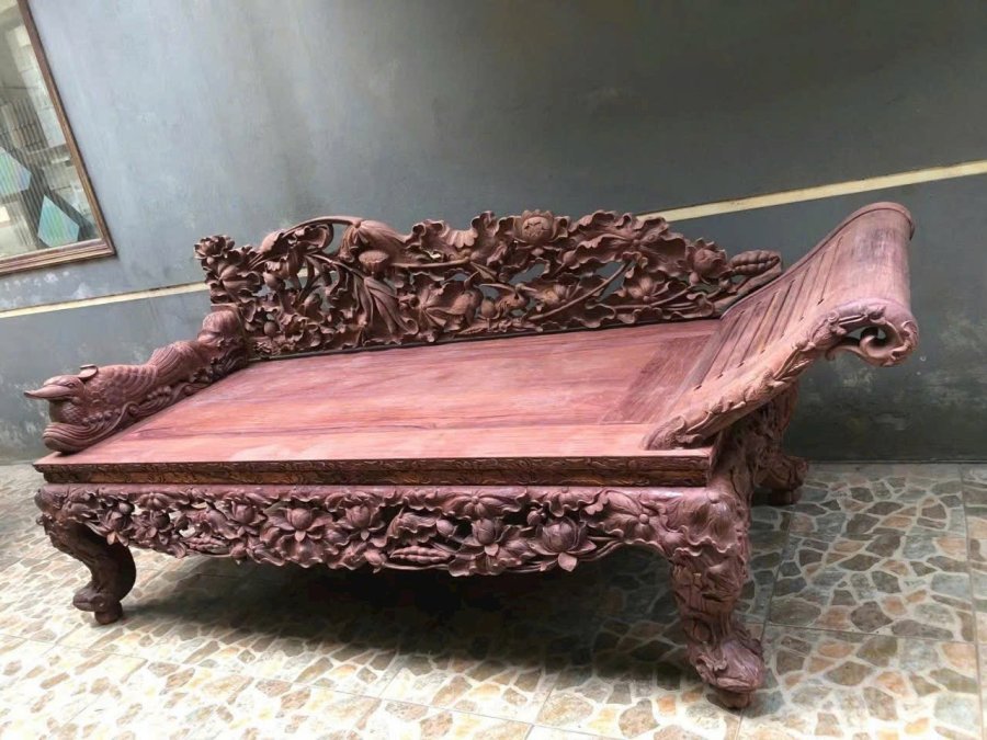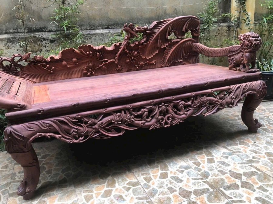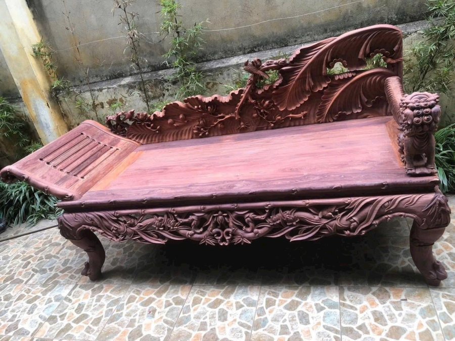 Giường phuơg lười gỗ Cẩm lai kt 2m60 rộng 80