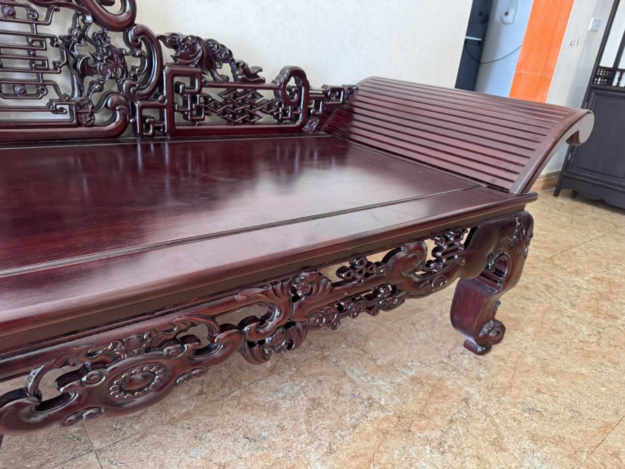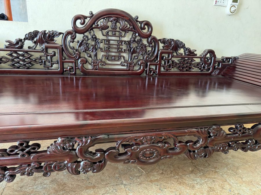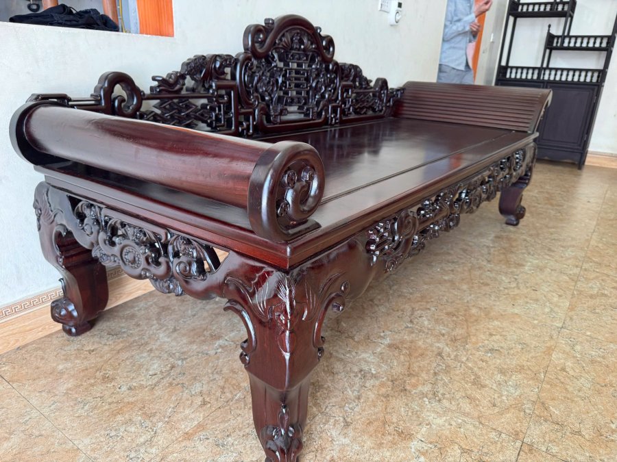 Giường phương luời ngũ phúc Gỗ gụ kt 2m40-80