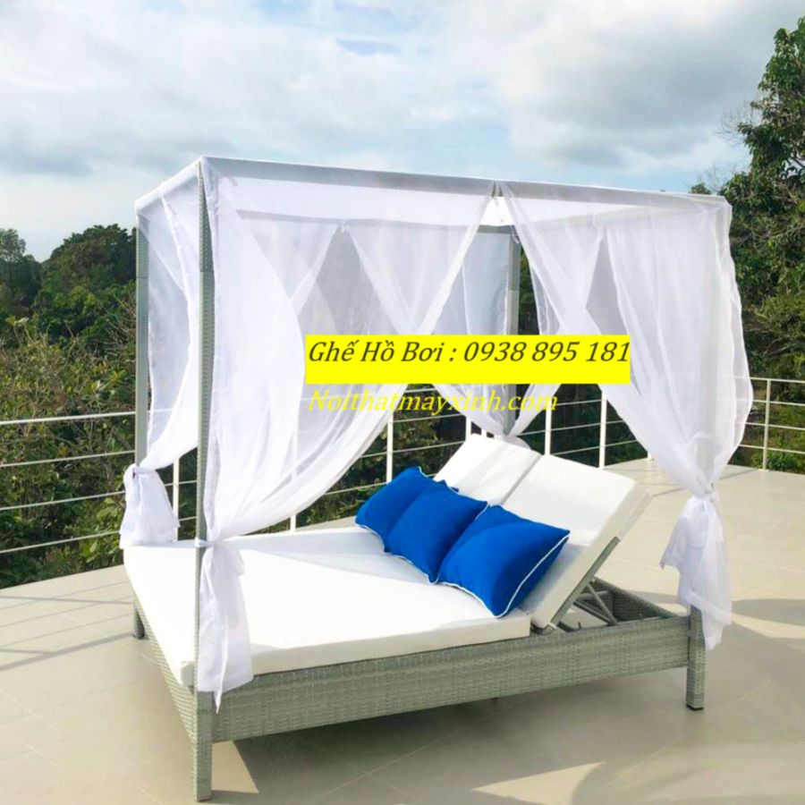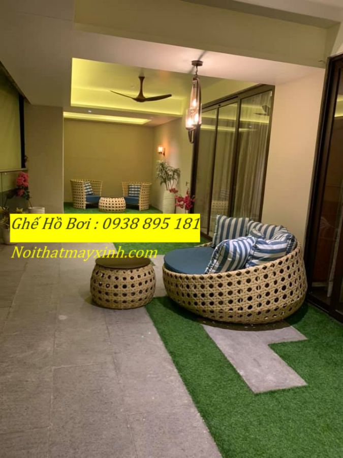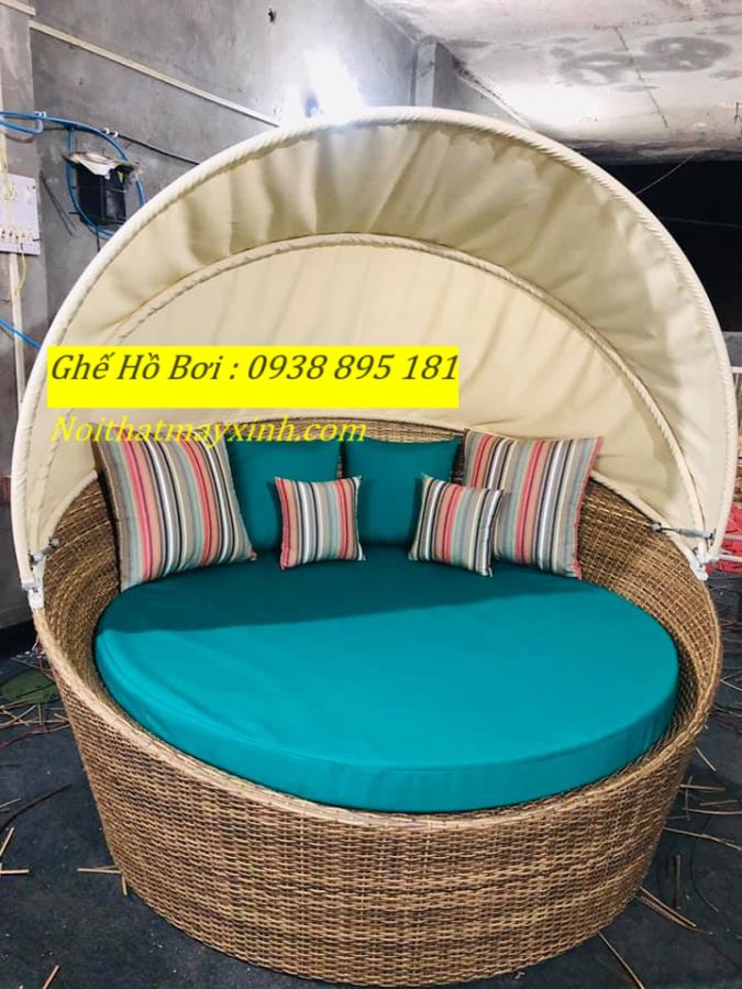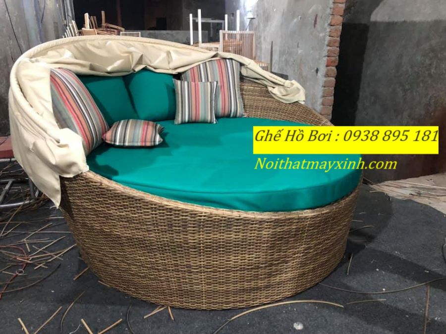 Xưởng sản xuất Giường tắm nắng hình tròn , giường hồ bơi mây nhựa tròn giao hàng toàn quốc