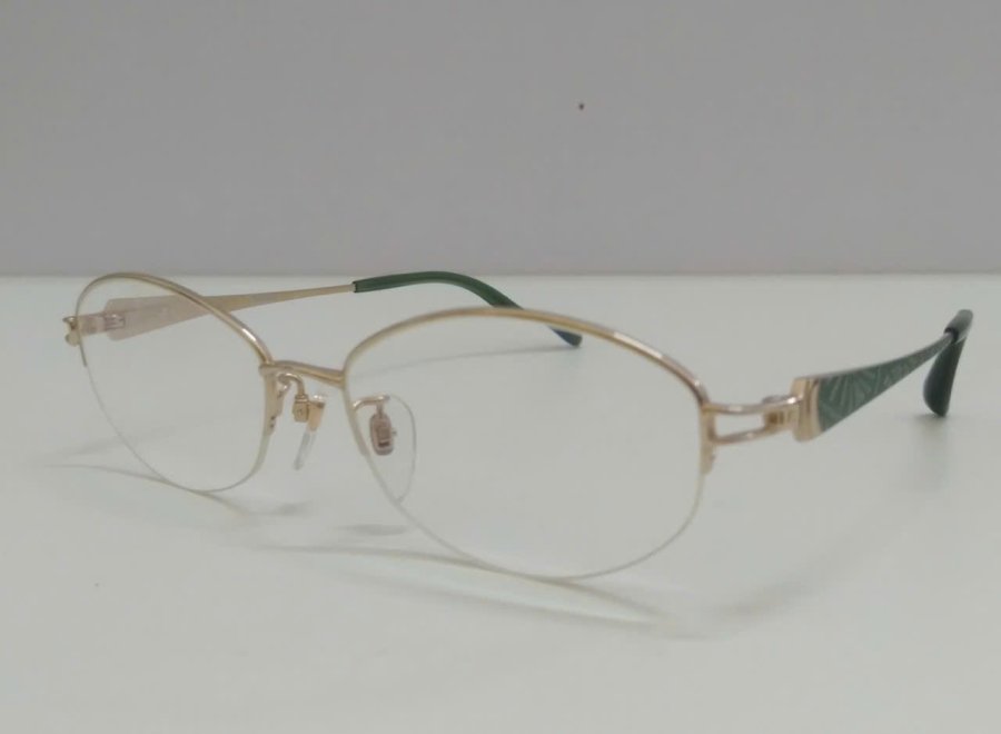 GKSS105 Gọng kính nữ nửa viền titanium màu vàng tây Rodenstock (R0279) (Thương hiệu Đức - Sx tại Nhật Bản). Gọng độ mới cao. Thiết kế sang trọng nhưng đầy nữ tính và quý phái. Càng kính màu xanh, hoa văn đẹp tinh tế. Gọng nhẹ, càng mềm đeo ôm chắc chắn. Ngang 14cm cao 3.6cm (54-17 135). Giá nước ngoài khoảng 9tr. Shop bán 1.8tr