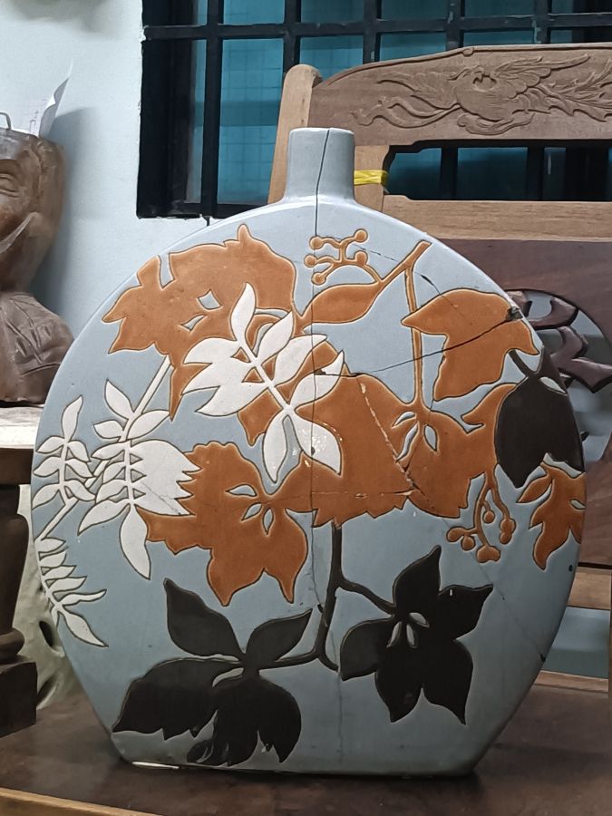Bình dáng đồng hồ to đã bị ra mảnh, cao 48 ngang 40 cm. Có tác giả. Ae xem ảnh! Cám ơn!