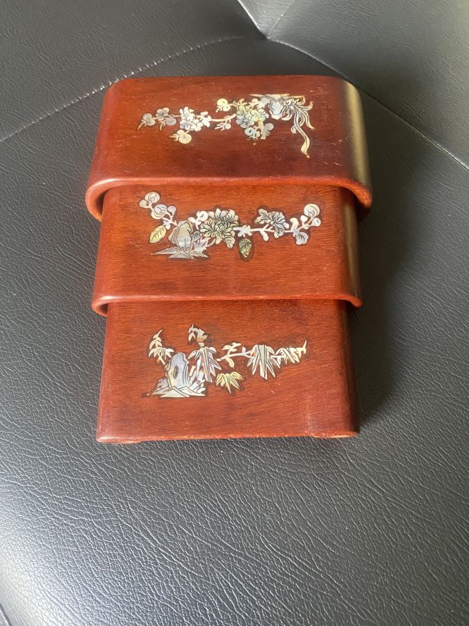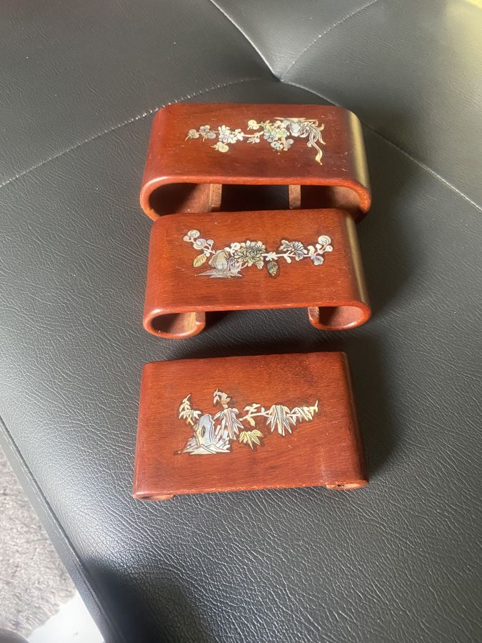 Gl bộ kê đồ xua, lành tít, gỗ xua cẩn cừ kt như hình cái lớn dài 24 ngang 7cm