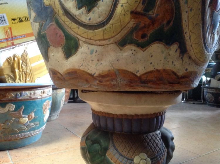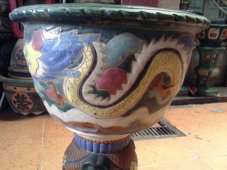 Kính Phố 1 chậu Rồng Biên Hoà xưa như hình: cốt dày sâu tuổi, có vết nẻ lò gần đáy chậu , toàn thân lành nguyên. AC thích alo 0908487558-0938731119, cảm ơn AC xem tin.