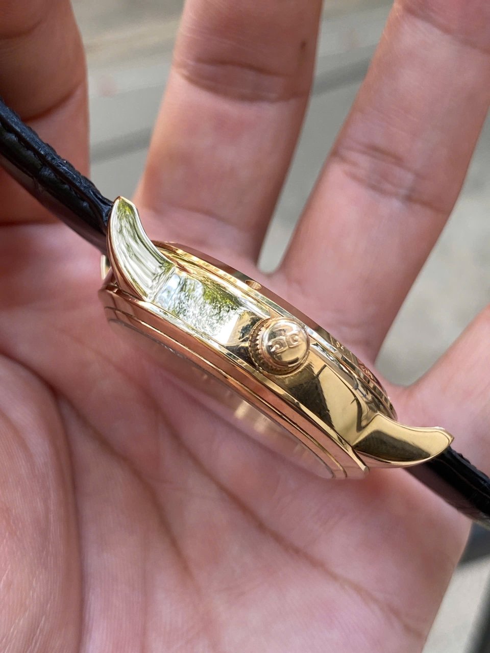 - Vỏ: Vàng hồng đúc 18k, Niềng: Vàng hồng đúc 18k, Đáy: Vàng hồng đúc 18k hở máy