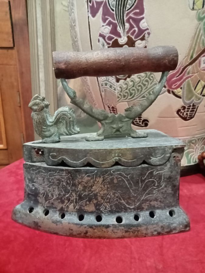 Bàn ủi này có điểm đặc biệt là được chạm khắc từ xưa hình cặp Rồng_Phượng 2 vách bên rất đẹp, đa phần bắt gặp là bàn ủi đồng để trơn. Chủ cũ nói lại xưa được quà tặng dịp kết hôn.