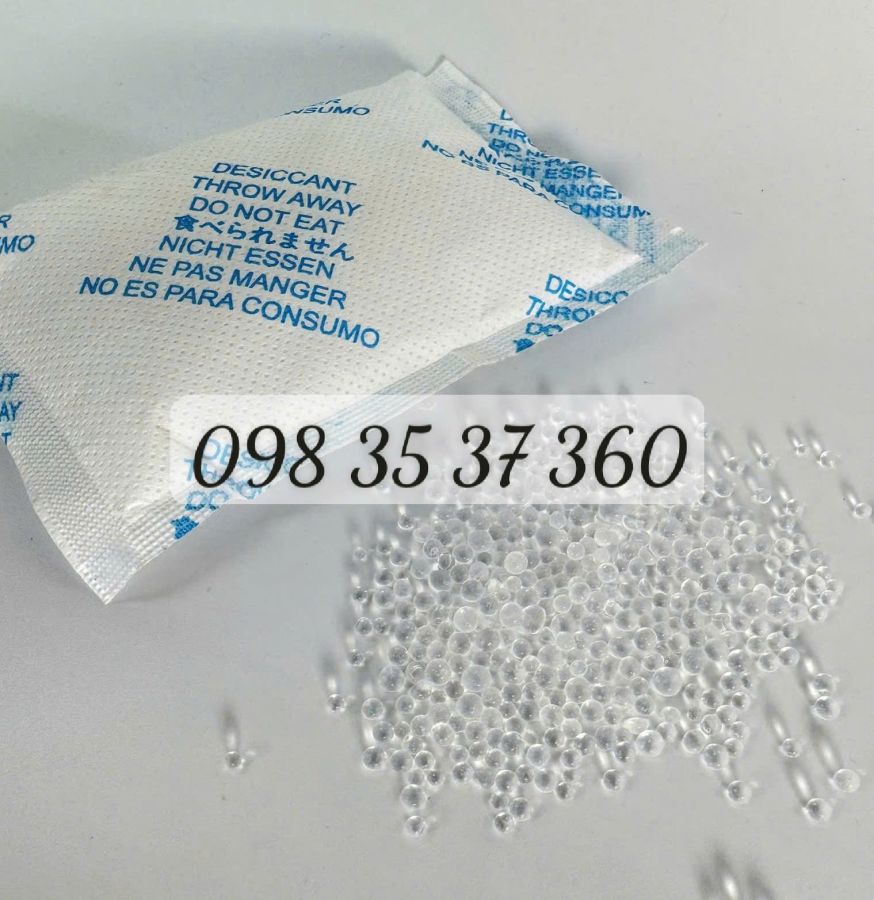 - Silica gel (silic điôxít): hạt thủy tinh xốp, không màu, có khả năng hấp thụ hơi nước cực tốt.