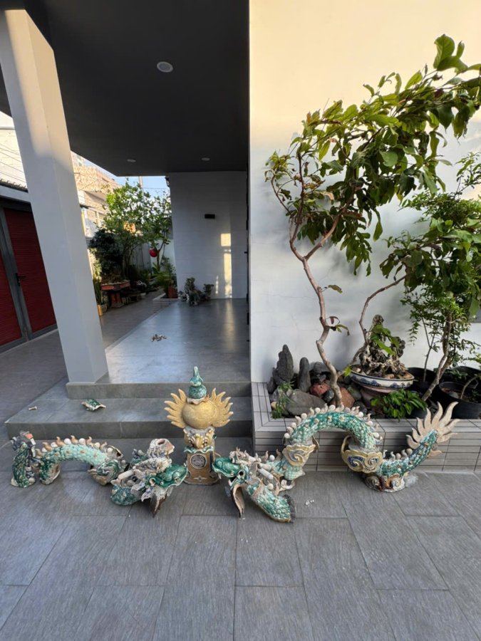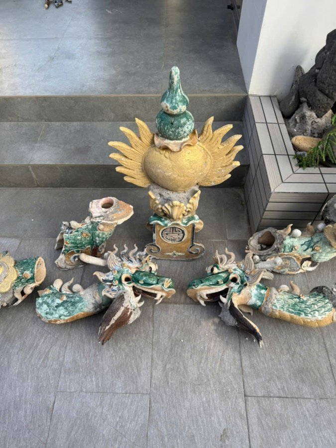 - Các hiên vật trên nguyên bản 100% chưa qua sửa chữa, thẩm mỹ gì cả, mới gỡ trên Đình vạn xuống. Do ngày xưa các cụ đắp thêm xi măng vào cho chắc.