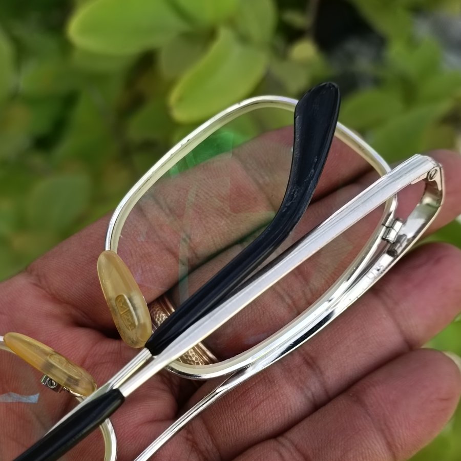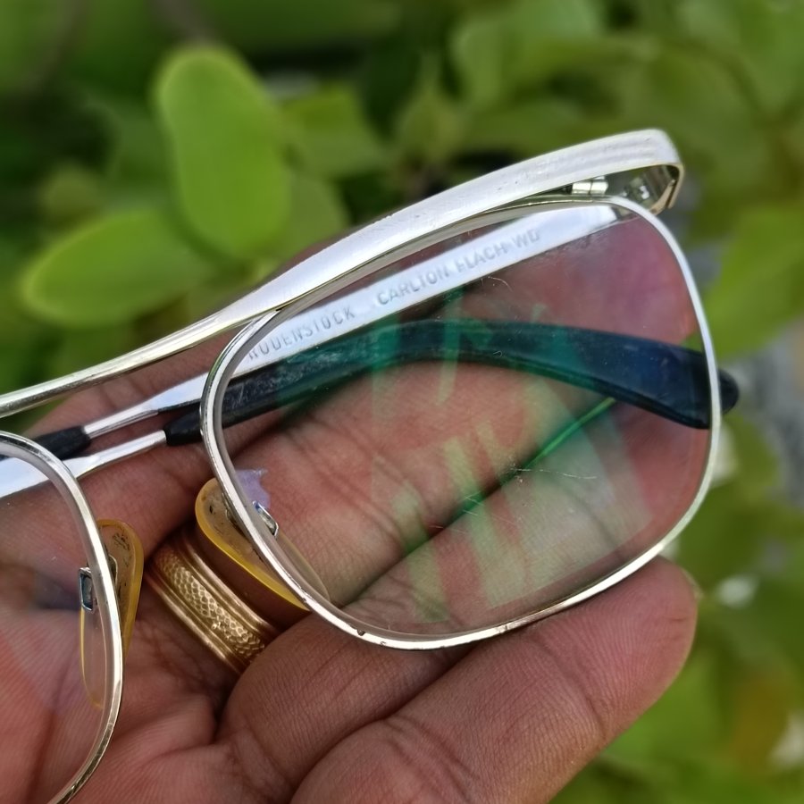 Gọng kính xưa Rodents schok chính hãng nguyên zin 100% - chất liệu bọc vàng 1/20 10k white gold - size ngang 130 - size mắt 54 - tình trạng đẹp - giá 1.499k ( KMC ). Kính mời