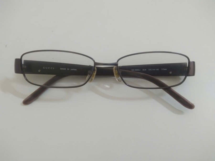 GKNU 000 468 Gọng kính nữ titanium màu phớt tím hun khói nhẹ thương hiệu đẳng cấp Gucci chính hãng. Gọng thiết kế theo phong cách giản gị trẻ trung nhưng rất nữ tính. Gọng nhẹ, cân đối, đeo ôm chắc chắn. Ngang 13.5cm cao 2.5cm (53-16 140). Giá mua nước ngoài khoảng gần 7tr. Shop bán 880k