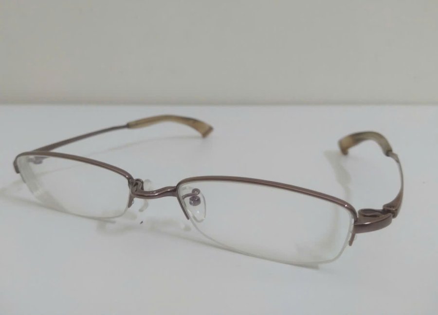 GKSS77A Gọng kính titanium màu nâu hun khói dáng nửa viền thương hiệu 999.9 (Made in Japan). Dáng gọng thanh mảnh, đậm chất tri thức. Màu sang đeo sáng khuôn mặt. Ngang 14.5cm chiều cao tùy chỉnh khi thay tròng mới. (Size 52-16 140). Giá mua mới nước ngoài khoảng 10tr. Shop bán 880k