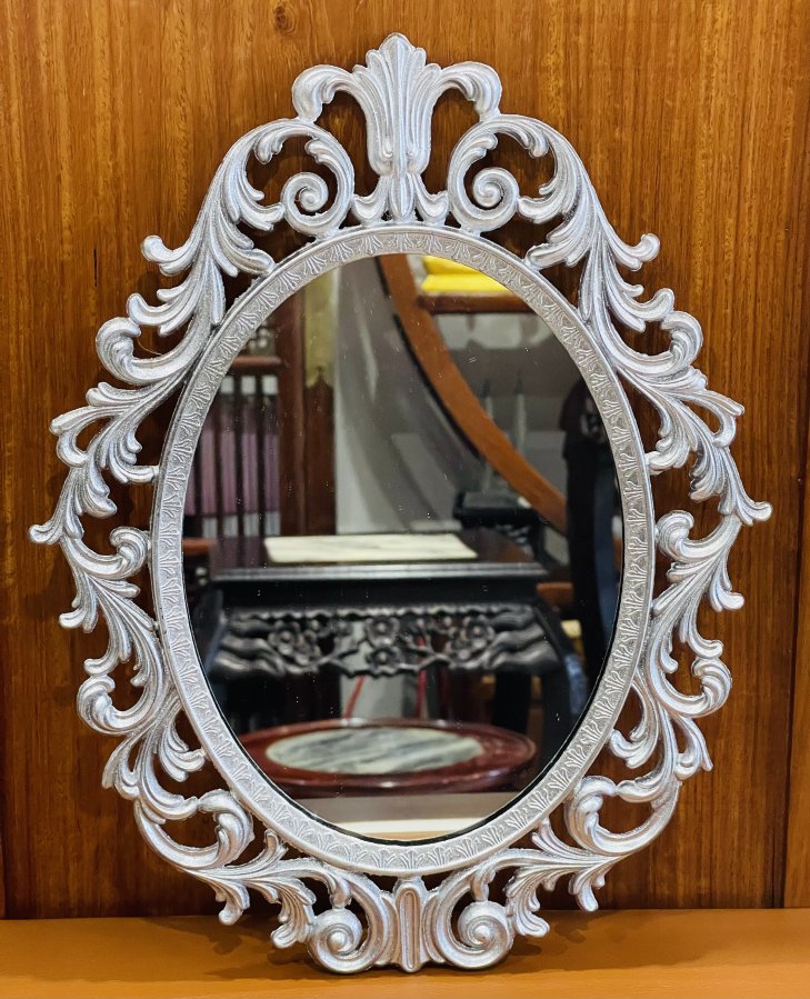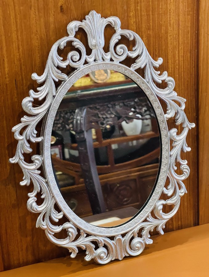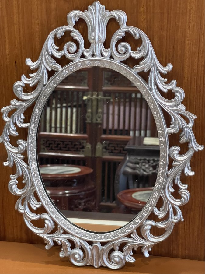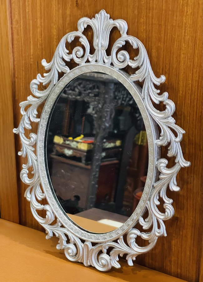 Gương Hoa Lá Tây chất liệu hợp kim đồng phủ nhũ xuất sứ Italia,kích thước 35/27cm.Thích hợp không gian Châu Âu xưa.