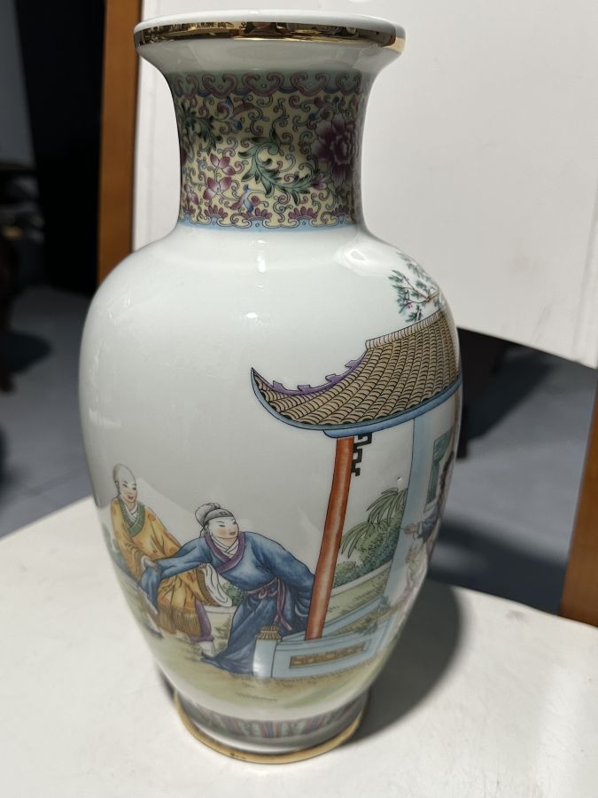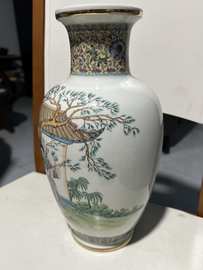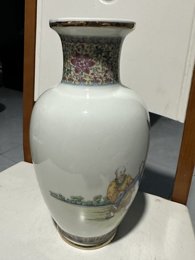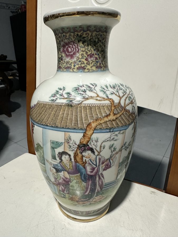 Lộc Bình ngũ sắc cốt rất mỏng.. vẽ tuyệt đẹp.. Tích Tỷ muội tình thâm..Cao 30,5cm, miệng 9,5cm. Bao hàng chuẩn cổ vật... Tình trạng như hình..bán rẻ 1 món cho 850 ngàn đồng bao gởi..