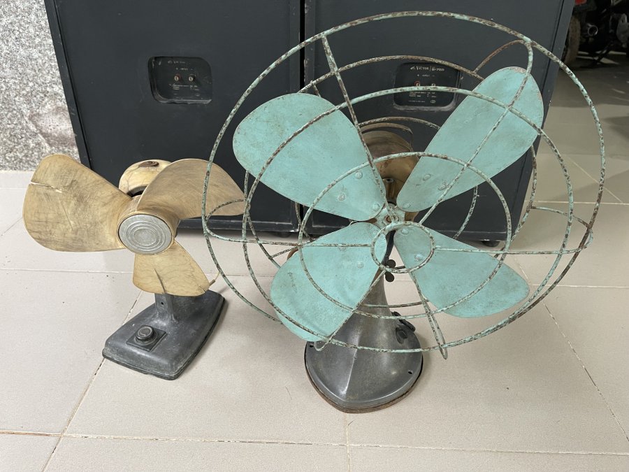 Bán 2 chiếc quạt gió xưa,quạt không hoạt động được,không có dây điện nguồn,cả 2 chiếc cốt còn lăng được.