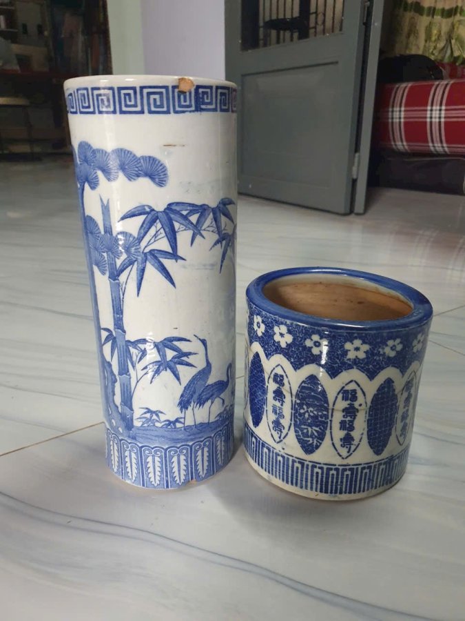 Hai ống bút,ống tranh chuẩn cổ.Có chút tình trạng.Vui lòng xem kỹ hình ảnh.