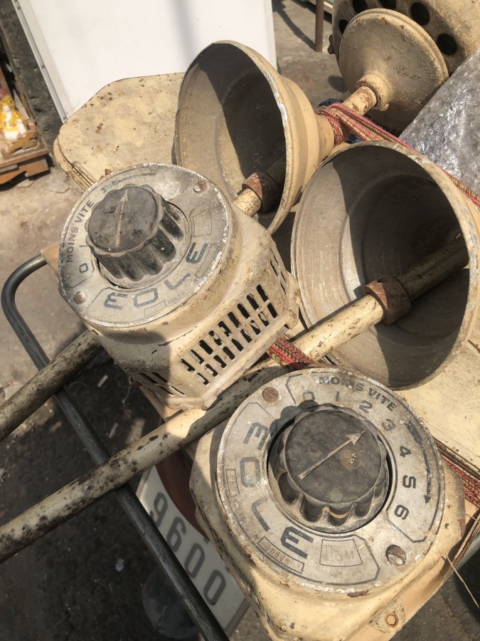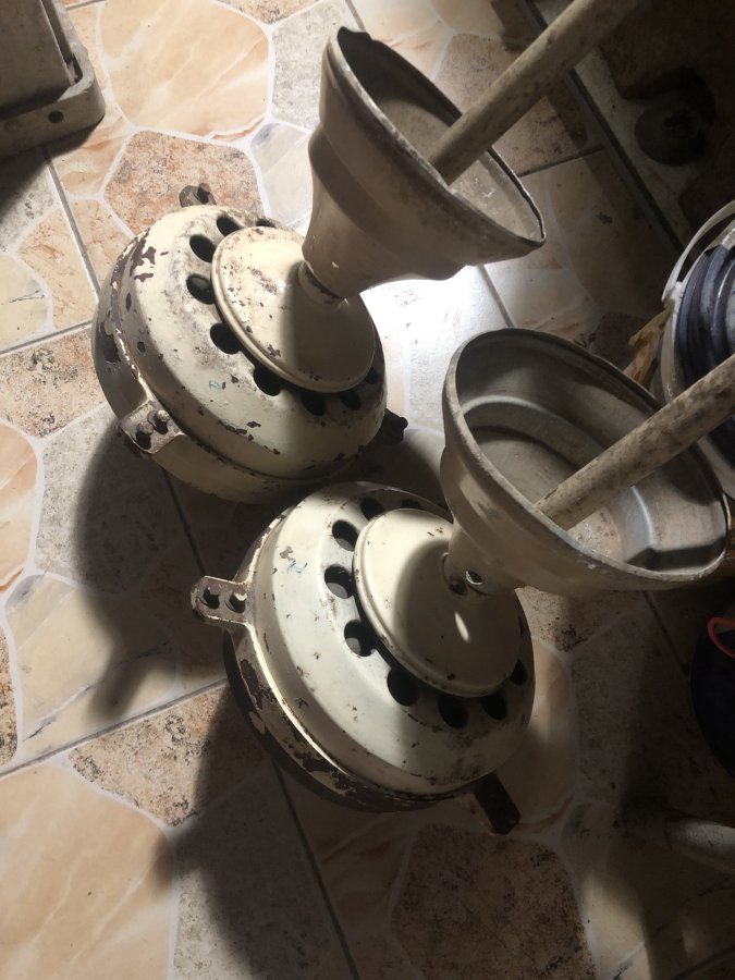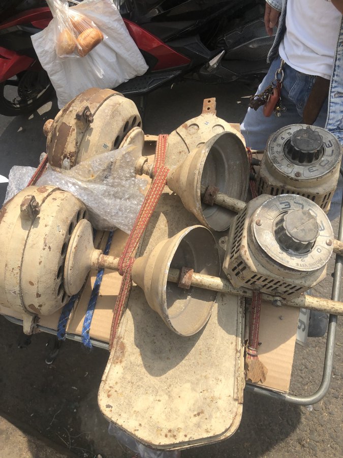 Quạt vẫn chạy 110v, nếu không kén màu sơn thì có thể treo luôn. Chỉ tróc sơn thôi, da em nó không rỗ tí nào