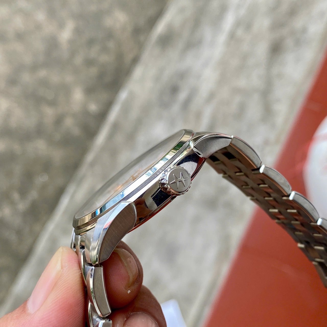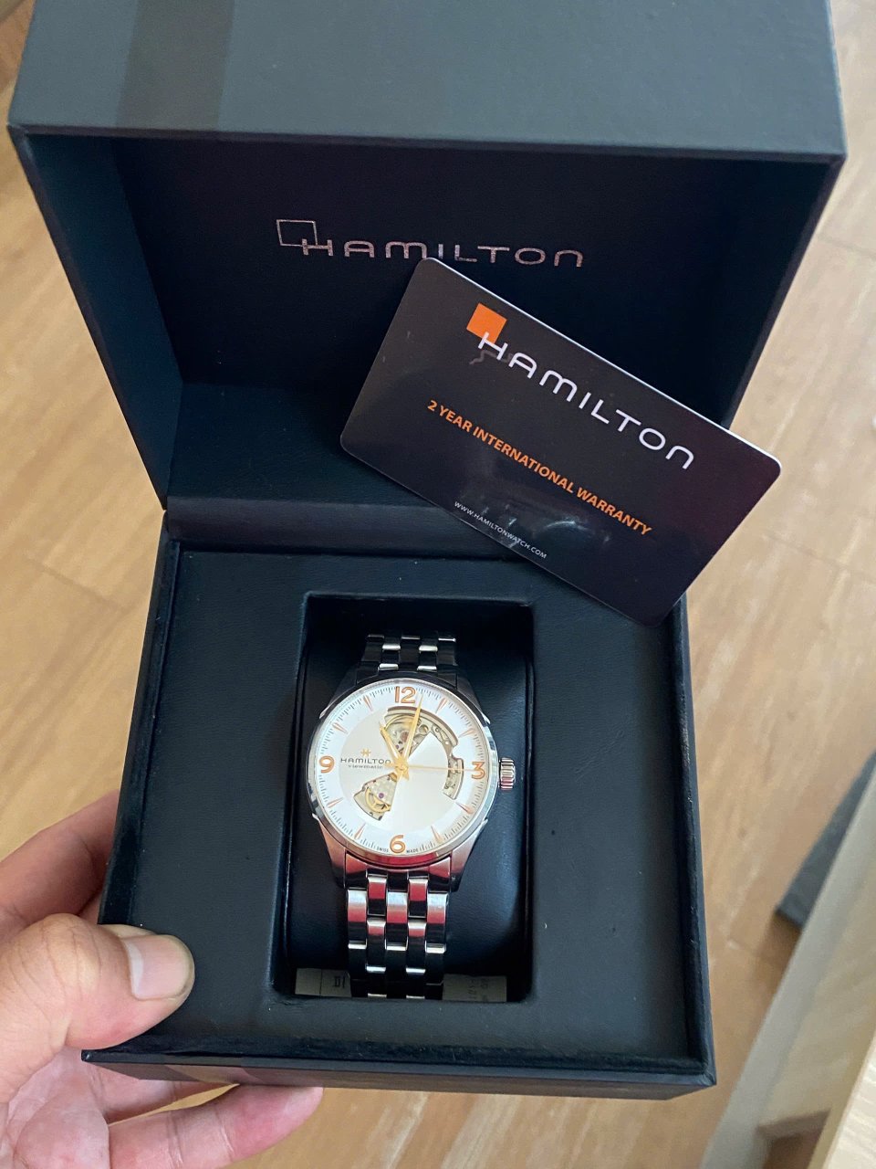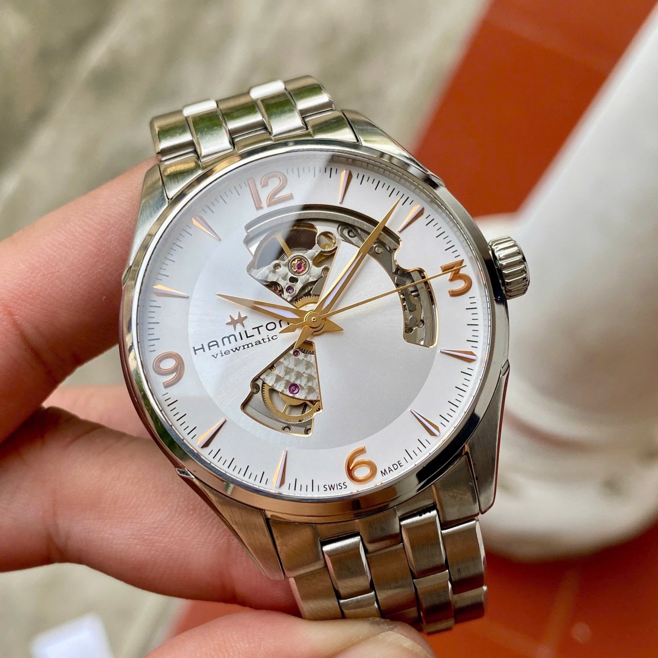 Ham jazzmaster Mặt trắng kim cọc vàng hồng Sz 42 kính saphire Máy auto h10 cót 80h Fullbox lướt zá êm