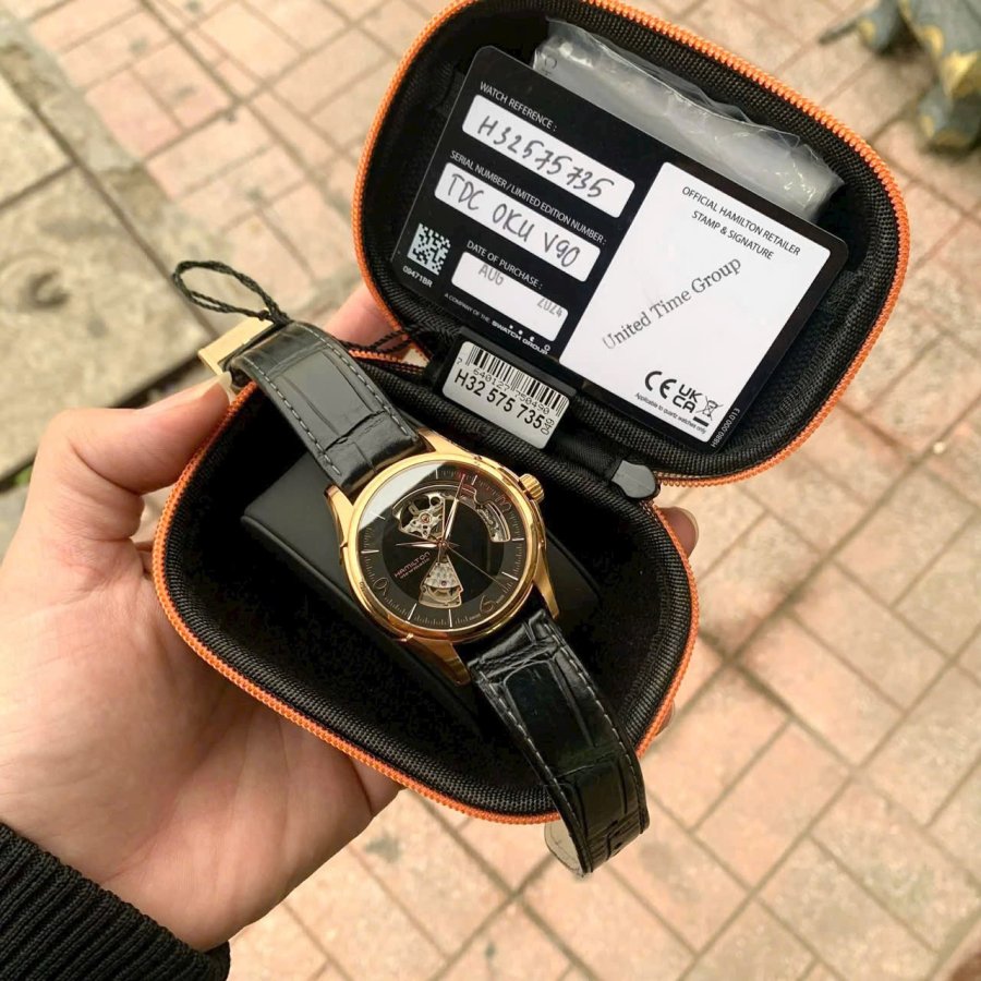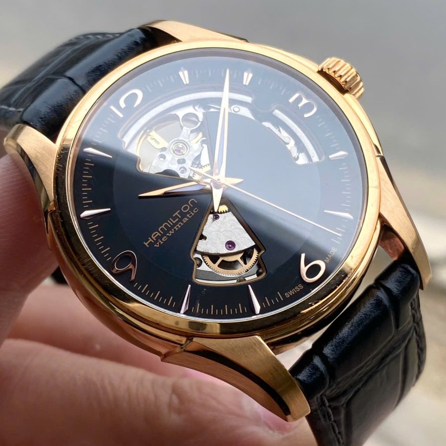 Hamilton Jazzmaster mạ vàngLộ cơ Open Heart tuyệt đẹpSize 40mmMáy H10 đời mới Nguyên zin fullset