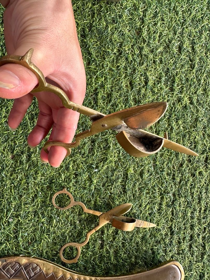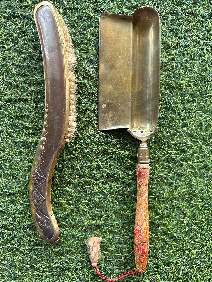 Bộ chổi và đồ hốt bụi bằng đồng thối đời trên 100 năm. Giá. 2tr