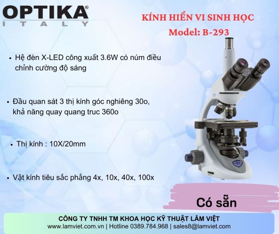 (HÀNG CÓ SẴN) Kính Hiển Vi Sinh Học Optika B-293
