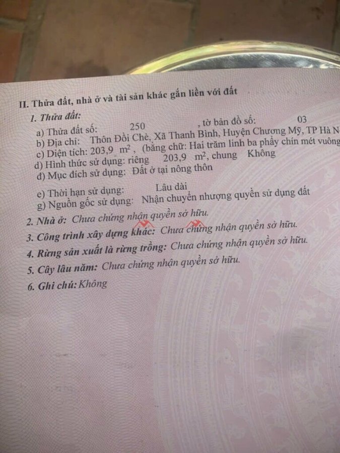 Chính chủ bán đất thổ cư tại Đồi Chè – Thanh Bình – Chương Mỹ-hà nội