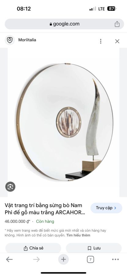 Cặp sừng ngang 72. Cao 36. Đường kính 21