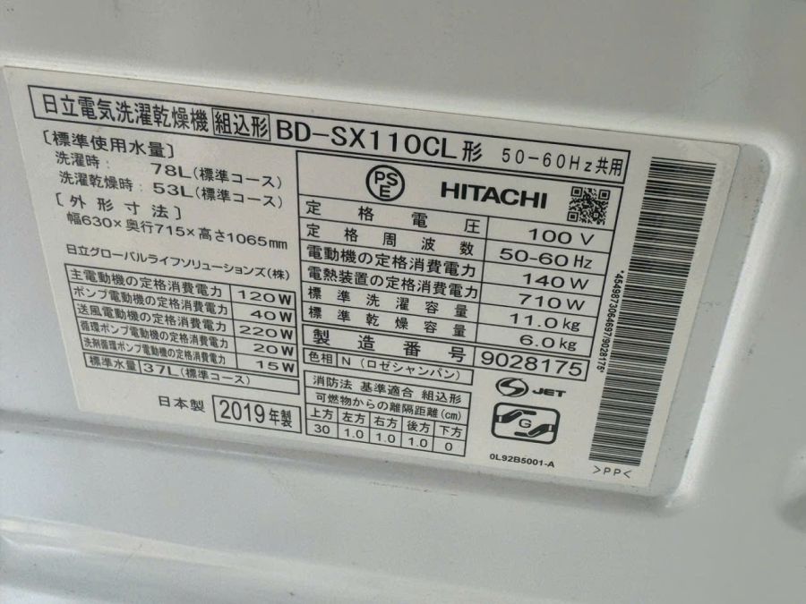 HÀNG MỚI VỀ : MÁY GIẶT SẤY Hitachi BD-SX110CL 11kg date 2019 còn trắng đẹp long lanh !